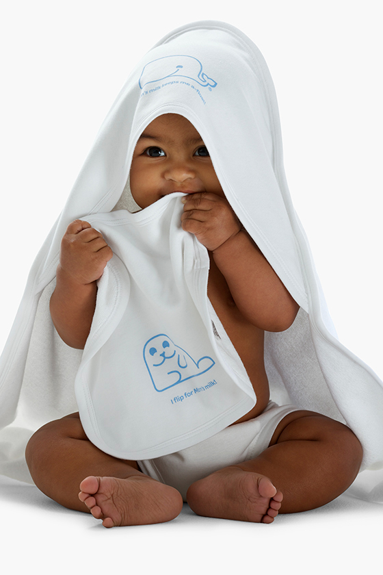 You will love wrapping your baby in our super soft, super absorbent bath towel. Each towel measures 37 inches by 37 inches and contains two, thick layers of French terry. The washcloth, a convenient 9-inch square, contains one layer of 100 percent Peruvian Pima cotton, perfect for washing faces, and one layer of French terry, for harder to clean areas. A baby whale and seal, two of baby gooroo’s original animal designs, are imprinted on the towel and washcloth along with a message about the importance of mother’s milk. The seal admits, “I flip for mom’s milk”. While the whale claims, “Mom’s milk keeps me a-float.”