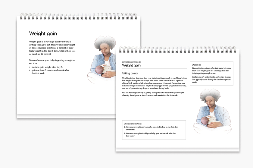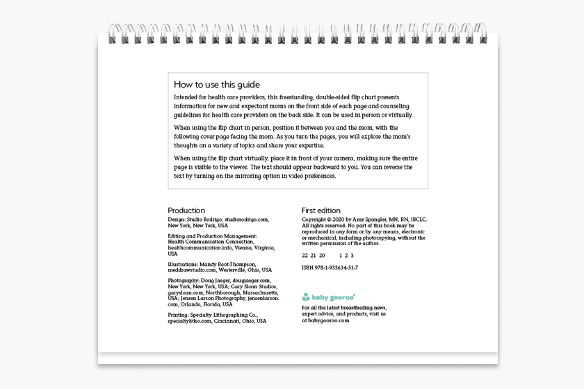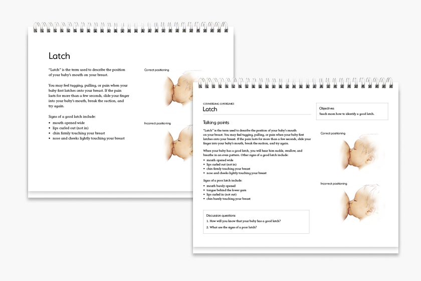Breastfeeding: Ready. Set. Go! | Counseling Guide is a companion piece to the Ready. Set. Go! | Pocket Guide. This step-by-step guide contains objectives, talking points, and discussion questions in a unique flip chart design that enables health care providers and parents to explore a variety of breastfeeding topics together. Its double-sided, tabletop design make it the perfect educational tool for clinics, offices, and hospitals.